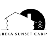 Logo of Eureka Sunset Cabins featuring a house silhouette and a tree under a partially shaded sun.
