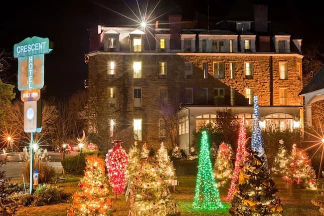 Take a scenic tour of Eureka Springs’ most dazzling holiday displays. This state tourism page highlights the Trail of Holiday Lights — a self-guided experience through neighborhoods, parks, and historic sites transformed by thousands of twinkling bulbs.