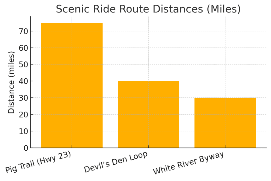 Don’t miss these three iconic loops: the Pig Trail (Highway 23) for its roller-coaster hills, the Devil’s Den State Park Loop for its mix of pavement and gravel switchbacks, and the White River Scenic Byway for a more relaxed riverside cruise. Each offers stunning Ozark vistas just a short detour from the main rally grounds.